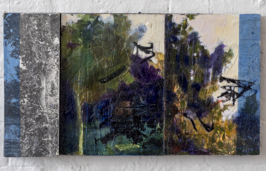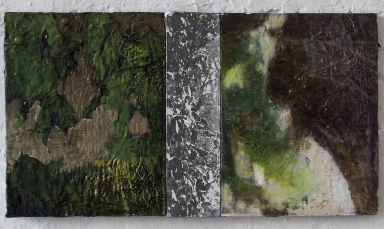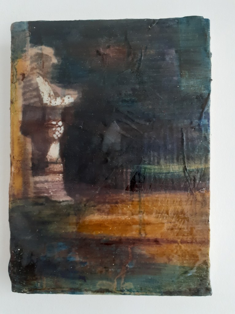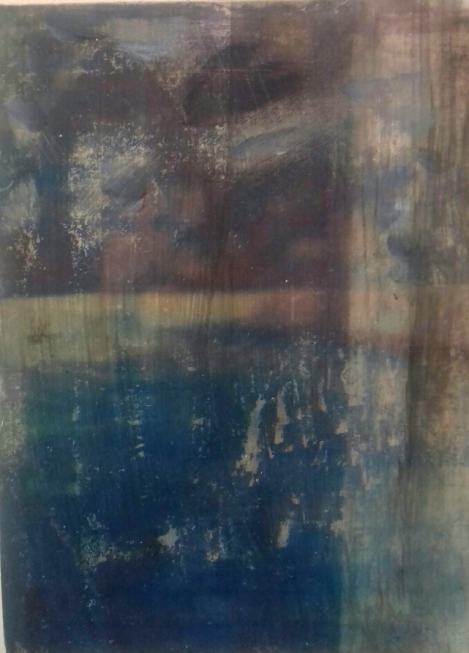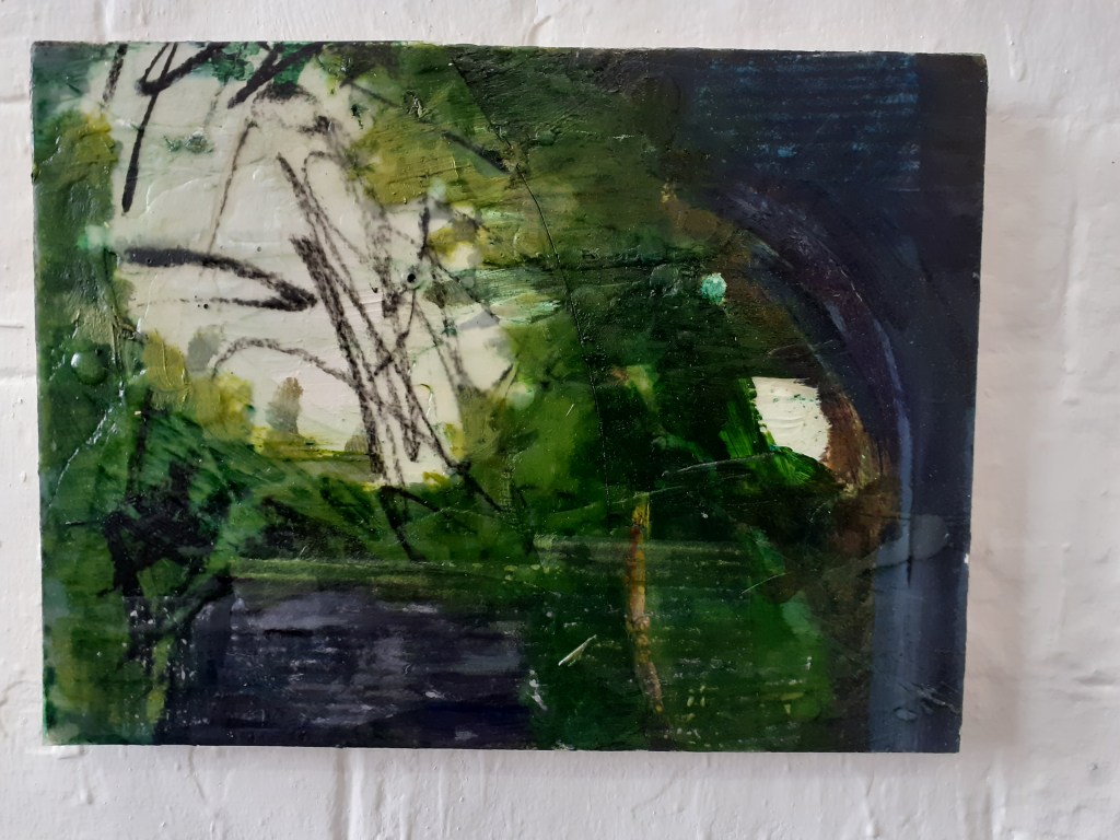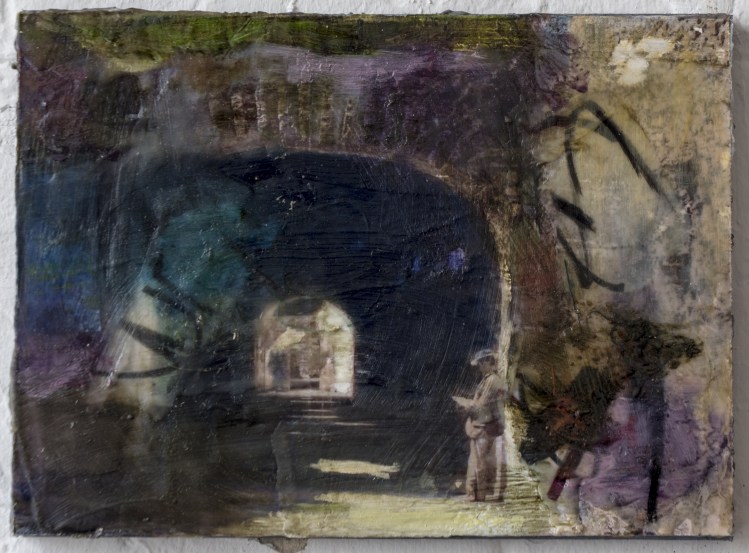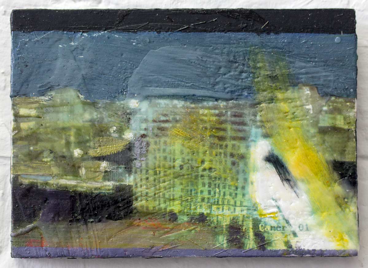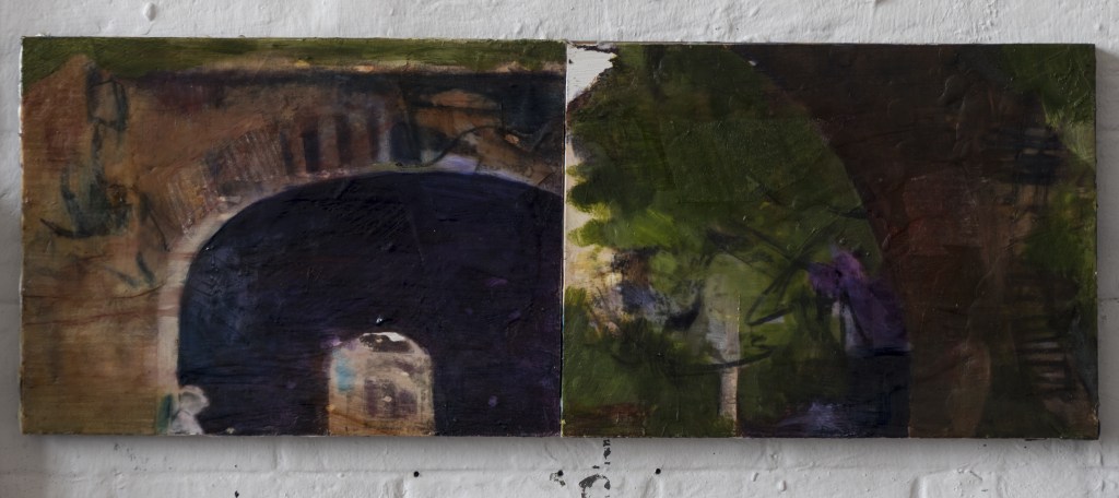 An Experience of an after image is caused when a perviously seen stimulus itself is no longer present. These paintings or as I sometimes prefer to call then ‘image objects’, are based on two sepia photographs bought in a junk shop several years ago. Somehow during the process both photographs have been lost, and the copies became copies of copies. Although the images were of two different locations, in some places they have begun to cohere and combine. Through retrieval, repetition and extension something new is forming, bringing out the possibilities laying hidden in the originals by ‘the accentuation of hidden details’.