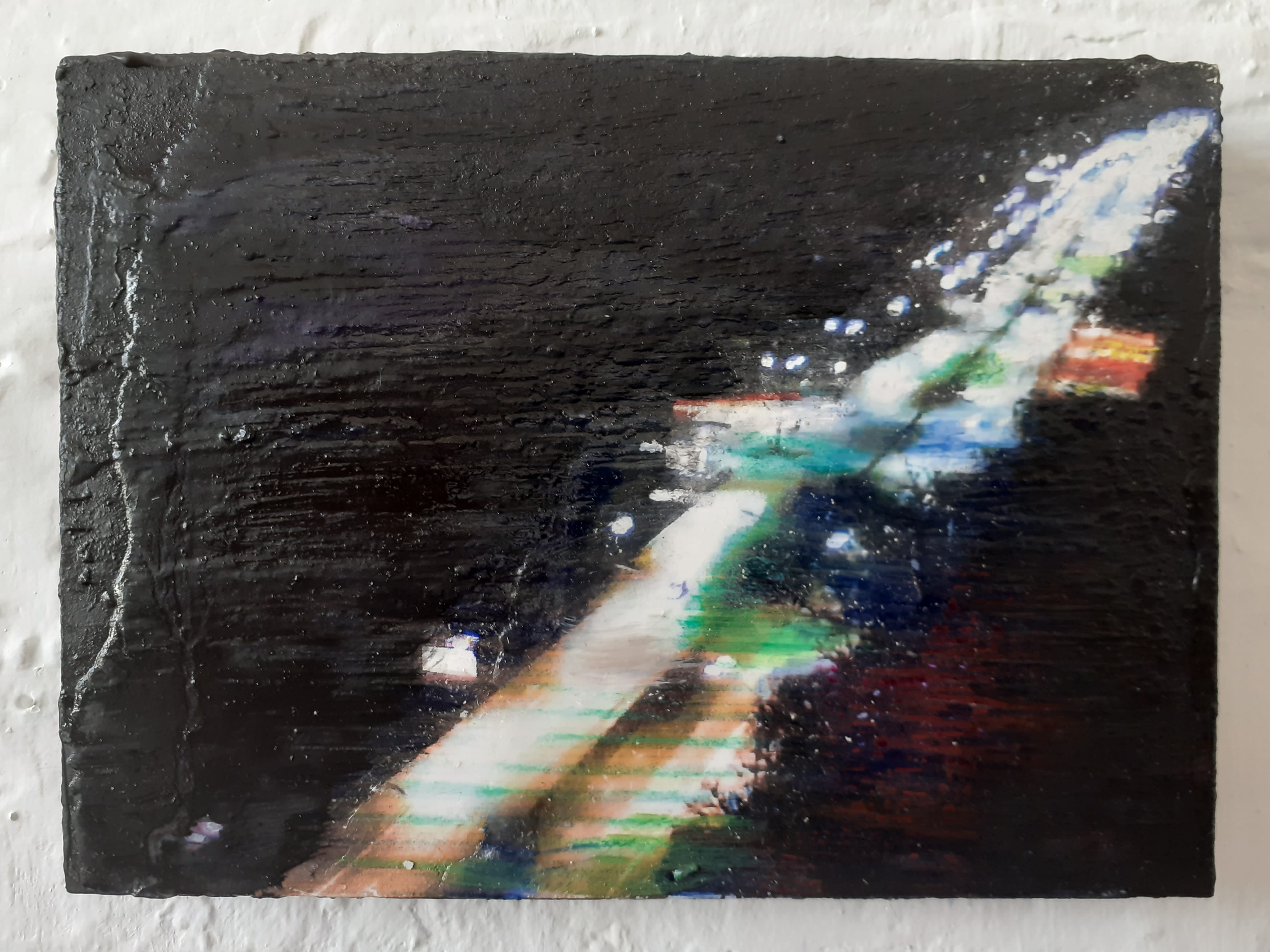 These paintings were based on live webcam images taken from cameras around Kiev in March 2022. They depict banal everyday scenes, the effects of the war were impossible to observe. The city seemed very near because of the absolute clarity of the images and yet also somehow far distant with knowledge of events unfolding. The images appeared to convey opposites, for example both at once conveying the seen but also the unseen. Through the materiality of their surfaces the paintings (image objects) hint at a missing corporeality and also point to the processes involved in their transcription across time, space and medium.