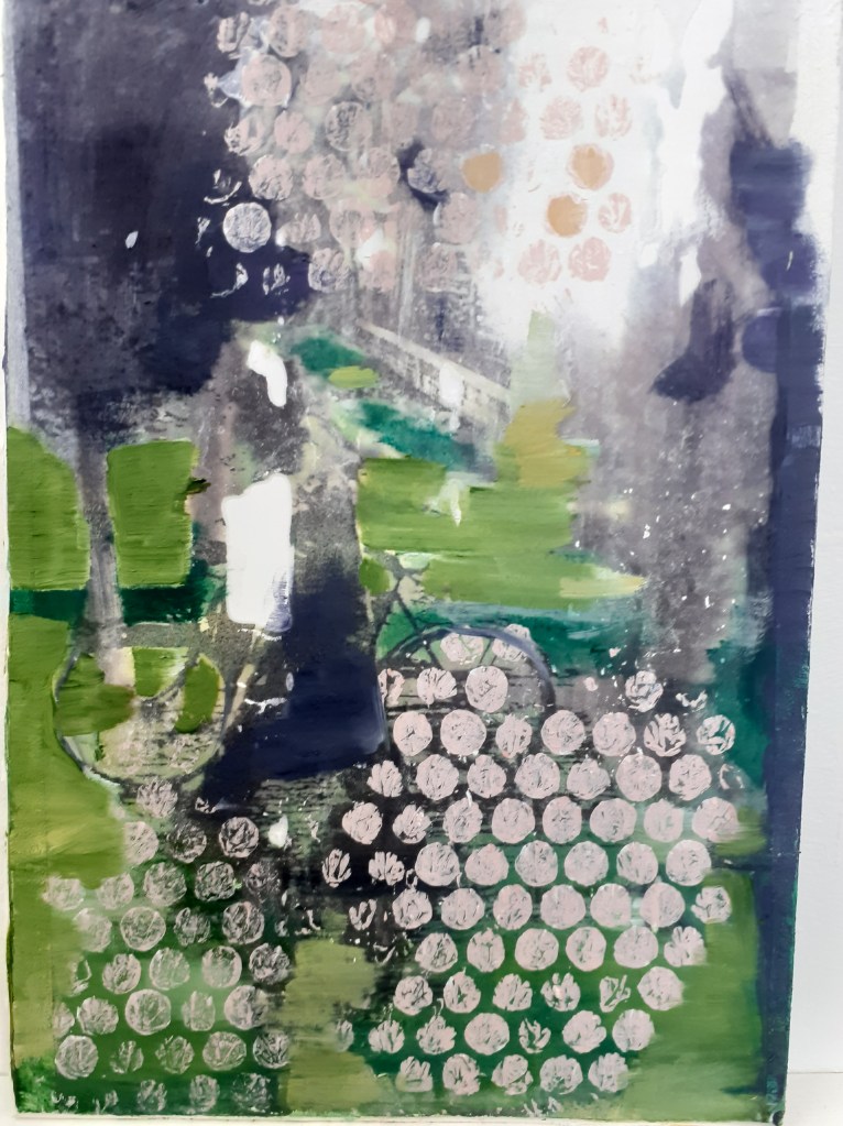 This work was more of a ‘technical excercise’ in that I wanted to see if I could use a photo-copy transfer method as a way to start a painting. Developing play between the autographic and photographic I used five photographs from a book by John Berger & Jean Muir and experimented with repetition, close cropping and surface/depth tension.
